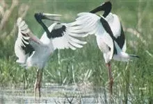 丹顶鹤:是鹤科、鹤属的一种大型涉禽,体长120-160厘米。颈、脚较长,通体大多白色,头顶鲜红色,喉和颈黑色,耳至头枕白色,脚黑色,站立时颈、尾部飞羽和脚黑色,头顶红色,…全部>>