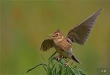 云雀,是雀形目百灵科云雀属鸟类。云雀上体大都砂棕色,各羽纵贯以宽阔的黑褐色轴纹;上背和尾上覆羽的黑褐纵纹较细,棕色因而较显著;后头羽毛稍有延长,略成羽冠状;两翅覆羽黑褐,…全部>>