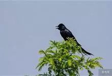 黑卷尾是雀形目卷尾科一属,又称铁练甲、铁燕子、铁林哥、羊蹄刺、榨油郎,体长约30厘米全身蓝黑色而具金属光泽,尾长且分叉较深。幼鸟似成鸟,金属光泽弱,下腹部具近白色的横纹。虹膜暗红色,嘴黑色,脚黑色。…全部>>