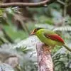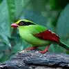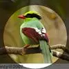 蓝绿鹊:中型鸟类,共有5个亚种。体长36-38厘米。尾长,嘴、脚红色。通体羽色主要为草绿色,宽阔的黑色贯眼纹向后延伸到后颈,在绿色的头侧极为醒目。两翅栗红色,内侧飞羽具黑色次端斑和白色尖端。尾绿色,…全部>>