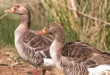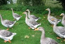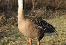 灰雁:体长70-90厘米,翼展147-182厘米,体重2.5-4千克,寿命17年。体大而肥胖。嘴、脚肉色,上体灰褐色,下体污白色,飞行时双翼拍打用力,振翅频率高。脖子较长。腿位于身体的中心支点,…全部>>
