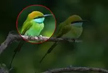 绿喉蜂虎是佛法僧目、蜂虎科的小型鸟类,共有9个亚种。身长22-25厘米,翼展29-30厘米,体重15-20克。喉绿色,额部、头顶至上背为锈红色,其余上体均为亮绿色。中央尾羽延长且端段狭细,…全部>>