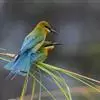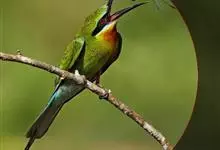 蓝颊蜂虎:是蜂虎科、蜂虎属的鸟类,共有2个亚种。体长27-33厘米,翼展46-49厘米,体重38-50克。嘴形细长而下弯,先端尖,…全部>>