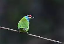 蓝喉拟啄木鸟,是须鴷科、拟啄木鸟属的鸟类。蓝喉拟啄木鸟为小型鸟类,体长20-23厘米。前额至头顶鲜红色,其上有一宽阔的黑色横带,将此红色分为前后二块;头侧、颏、喉蓝色,下喉两侧各具一红色点斑。…全部>>