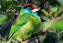 蓝喉拟啄木鸟,是须鴷科、拟啄木鸟属的鸟类。蓝喉拟啄木鸟为小型鸟类,体长20-23厘米。前额至头顶鲜红色,其上有一宽阔的黑色横带,将此红色分为前后二块;头侧、颏、喉蓝色,下喉两侧各具一红色点斑。…全部>>