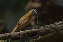 长嘴钩嘴鹛是画眉科、钩嘴鹛属中型鸟类,体长24-27厘米。嘴粗壮、长而尖且向下弯曲。上体橄榄褐色或橄榄棕褐色,颊和耳羽灰褐色,其后有一栗红色斑,耳羽上面从眼后开始有一长的白色纵纹沿颈侧向下。下体白色,…全部>>