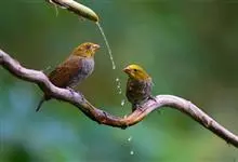 普通朱雀是雀形目雀科朱雀属鸟类,又名红朱雀、马料、青麻料。雄鸟上体红色,下体淡红色;头部、喉部、胸部及腰部亮红色;背部褐色染红色;两翼及尾黑褐色,羽缘染红色。雌鸟上体橄榄褐色,下体近白色,…全部>>
