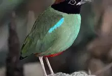 绿胸八色鸫:是雀形目八色鸫科的鸟类,共有12个亚种。体长为16-18厘米,体重65-69克。体型圆胖,尾短,腿长。头黑,上体绿色,两翼深色而具白色斑纹,头顶至后枕深褐,胸及腹部苹果绿,臀亮红。…全部>>