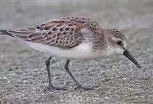 斑胸滨鹬小中型涉禽;体长23厘米,翼展37-45厘米,体重126克。嘴形直,有时微向上或向下弯曲;鼻沟长度远超过上嘴的1/2;羽色暗淡,雌雄羽色及大小大都相同;跗蹠后侧具盾状鳞,…全部>>