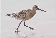 斑尾塍鹬,是鸻形目鹬科塍鹬属鸟类。其体形较大,体长约40厘米;喙较长,基部肉红色、尖端黑色而略向上翘;贯眼纹细而深,眉纹白色明显;雌鸟体型比雄鸟大,喙部也明显更长。非繁殖期雌雄鸟羽色相似,…全部>>