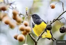 黄腹啄花鸟:体重11-16克,体长104-117毫米。是一种体型大,下腹部为艳黄色的啄花鸟,雄鸟特征为头黑色,喉部有白色纵斑、喉侧及上体成对比,两翅和尾黑色,外侧尾羽内翈具白色斑块。其余下体淡黄色。…全部>>