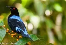 和平鸟中型鸟类,体长24~28厘米。眼红色,嘴、脚黑色。雄鸟从头顶到尾上覆羽等整个上体辉蓝色具紫色光泽,其余体羽黑色。雌鸟通体铜蓝色,仅飞羽黑褐色。常见的低地留鸟,…全部>>