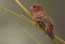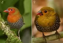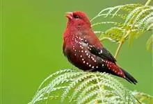 红梅花雀小型鸟类,体长9-10厘米。雄鸟通体朱红色,背、肩、胸等满布白色小斑点,两翅和尾黑褐色均具白色端斑,嘴红色,脚蜡黄色。雌鸟上体淡褐色或赭褐色,翅上中覆羽、大覆羽和内侧飞羽末端具白色斑点,…全部>>