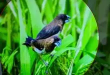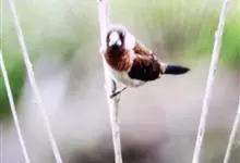 栗腹文鸟:小型鸟类,体长10-12厘米。嘴蓝灰色,基部粗厚,先端尖、呈圆锥状, 脚亦为蓝灰色,整个头、颈和上胸黑色,其余体羽栗色,或下胸和腹中央至尾下覆羽黑色。尾栗红色。全部>>