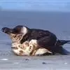 灰背鸥大型水鸟,体长62~69厘米。嘴直,黄色,下嘴先端有红色斑。脚粉红色,头、颈和下体白色,背、肩和翅黑灰色,腰,尾上覆羽和尾白色。冬季头和上胸有褐色纵纹,特别是眼周和后枕较密。飞翔时翅前后缘白色…全部>>