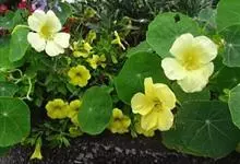 旱金莲是旱金莲科旱金莲属蔓生一年生草本植物。叶互生,叶柄向上扭曲,盾状,叶圆形,具波状浅缺刻,下面疏被毛或有乳点;花黄、紫、桔红或杂色,花托杯状,花瓣为圆形,边缘具缺刻;果实为扁球形;花果期6-10月,…全部>>