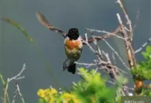 黑喉石鵖,雀形目鹟科石鵖属小型鸣禽,俗名谷尾鸟、黑喉石。其体色为黑褐色。雄鸟头部、背部、两翼及尾黑色,颈侧及翼上具白斑,胸部和腹侧红棕色,腰及尾下覆羽白色。雌鸟体色为褐色,上体具深色纵纹,胸部染棕色,…全部>>