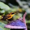 金色林鸲是鹟科、鸲属小型鸟类,体长12-15厘米。头顶至背黄橄榄绿色,眼先和头侧黑褐色,眉纹金橙黄色。肩、翅上小覆羽、腰、尾上覆羽和整个下体概为金橙黄色,两翅黑色。中央尾羽黑色,…全部>>