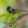 金色林鸲是鹟科、鸲属小型鸟类,体长12-15厘米。头顶至背黄橄榄绿色,眼先和头侧黑褐色,眉纹金橙黄色。肩、翅上小覆羽、腰、尾上覆羽和整个下体概为金橙黄色,两翅黑色。中央尾羽黑色,…全部>>