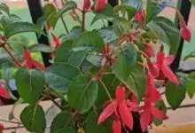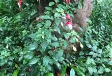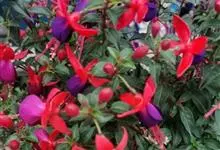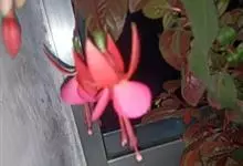 倒挂金钟是柳叶菜科倒挂金钟属亚灌木植物。茎直立,多分枝;幼枝带红色,被短柔毛与腺毛,老时渐无毛;叶对生,卵形或窄卵形,脉常带红色;常带红色,被短柔毛与腺毛;花筒红色,筒状钟形,…全部>>