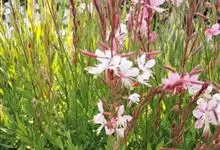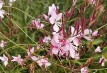 山桃草是柳叶菜科、山桃草属植物。多年生宿根草本。高60-100厘米,叶无柄,椭圆状披针形或倒披针形,花期晚春至初秋;多花型,花蕾白色略带粉红,初花白色,谢花时浅粉红。花紫红色,成密生的穗状花序,…全部>>