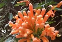 炮仗藤 Miers)紫葳科炮仗藤属藤本植物。小枝顶端有丝状卷须;叶对生,卵形;花萼钟状,橙红色,长椭圆形,花丝丝状,花药叉开;果瓣为革质,舟状。花期1-6月。初夏红橙色的花朵累累成串,状如鞭炮,…全部>>