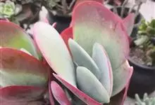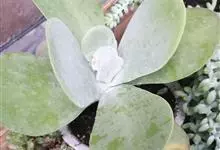 唐印为景天科伽蓝菜属的多年生肉质草本植物。植株中型,株高50厘米,宽20厘米,多分枝;叶片肉质,对生,卵形,全缘,先端钝圆,叶片淡绿色至灰绿色,表面被有厚厚的白粉,光照充足时,叶缘呈红色;圆锥花序,…全部>>