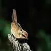 白腹幽鹛,是画眉科幽鹛属鸟类,共有4亚种。雕雄羽色相似。 上体从头到尾包括两题表面概为微椎褐色,两翅和尾沾更多红色。眼先和颚上灰褐色,耳覆羽褐色具族色羽轴纹,颈与背同色。额、喉白色具矢状黑斑,…全部>>