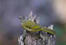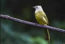 黄绿鹎,小型鸟类,体长19-22厘米。额至头顶暗褐具灰色羽缘,眼先黑色,其上面有一粗著的白纹从鼻后至眼,在黑色的头部极为醒目。上体橄榄绿褐色。颏、喉淡灰色或灰白色,胸灰褐色具橄榄黄色羽缘,…全部>>