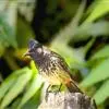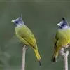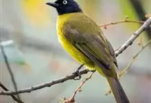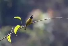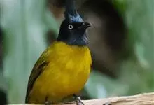 黑冠黄鹎:体长18-21厘米,是一种中等体型偏黄色鹎。整个头、颈、颏、喉黑色,头顶有显著直立的羽冠,黑色,上体褐橄榄黄绿色,下体橄榄黄色。虹膜偏红;嘴及脚黑色。…全部>>