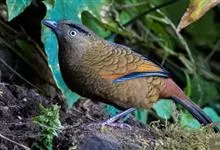 蓝翅噪鹛:噪鹛科、彩翼噪鹛属动物。中型鸟类,体长22-25厘米。上体棕橄榄褐色密被黑色鳞状斑,眼蓝白色,眼上有一长而宽阔的黑色眉纹,从眼先直到颈侧。下体棕褐色被黑色鳞状斑;尾上和尾上覆羽栗色,…全部>>
