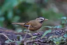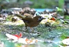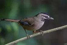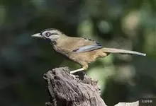 灰翅噪鹛中型鸟类,体长21~25厘米。额黑色,头顶黑或灰色,眼先、脸白色。上体橄榄褐至棕褐色,尾和内侧飞羽具窄的白色端斑和宽阔的黑色亚端斑,外侧初级飞羽外翈蓝灰色或灰色,颧纹黑色。…全部>>