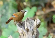 大噪鹛:中型鸟类,体长32-36厘米。额至头顶黑褐色,背栗褐色满杂以白色斑点,斑点前缘或四周还围有黑色。初级覆羽、大覆羽和初级飞羽具白色端斑。尾特长,均具黑色亚端斑和白色端斑。颏、喉棕褐色,…全部>>