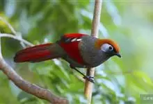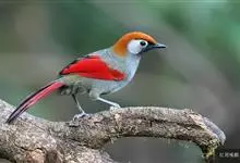 赤尾噪鹛中型鸟类,体长24~28厘米。头顶至后颈红棕色,两翅和尾鲜红色,眼先、眉纹、颊、颏和喉黑色,眼后有一灰色块斑。其余上下体羽大都暗灰或橄榄灰色。特征极明显,特别是通过鲜红色的头顶、翅和尾。…全部>>