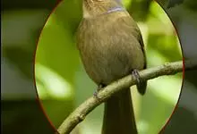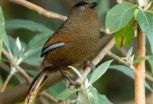 灰翅噪鹛中型鸟类,体长21~25厘米。额黑色,头顶黑或灰色,眼先、脸白色。上体橄榄褐至棕褐色,尾和内侧飞羽具窄的白色端斑和宽阔的黑色亚端斑,外侧初级飞羽外翈蓝灰色或灰色,颧纹黑色。…全部>>