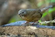 褐脸雀鹛是雀眉科、雀鹛属型鸟类,体长15-17厘米。头顶褐灰色具黑色侧冠纹,头侧皮黄褐色。上体和两翅表面橄榄褐色,尾褐色。下体浅茶黄色。虹膜灰色或褐色,嘴蓝灰色;嘴峰黑色,下嘴灰色,脚淡灰色。…全部>>