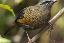 蓝翅噪鹛:噪鹛科、彩翼噪鹛属动物。中型鸟类,体长22-25厘米。上体棕橄榄褐色密被黑色鳞状斑,眼蓝白色,眼上有一长而宽阔的黑色眉纹,从眼先直到颈侧。下体棕褐色被黑色鳞状斑;尾上和尾上覆羽栗色,…全部>>