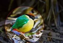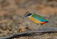 蓝翅八色鸫是雀形目八色鸫科的鸟类。体长17-20厘米,体重类约48-70克,体型圆胖,尾短,腿长,以身体具有红、绿、蓝、白、黑、黄、褐、栗等鲜艳夺目,丰富艳丽的色彩而得名,是很有观赏价值的鸟类。主要…全部>>