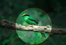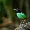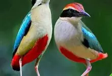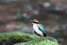 绿胸八色鸫:是雀形目八色鸫科的鸟类,共有12个亚种。体长为16-18厘米,体重65-69克。体型圆胖,尾短,腿长。头黑,上体绿色,两翼深色而具白色斑纹,头顶至后枕深褐,胸及腹部苹果绿,臀亮红。…全部>>