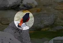红头咬鹃: 体大,体长约33厘米,体重75-110克。头、颈暗绯红色;背、肩锈褐色。两翅黑色,翅上覆羽和内侧飞羽密被白色细虫蠹斑纹,初级飞羽黑色,外侧具白色羽缘;腰和尾上覆羽较多锈色。中央尾羽深栗色,…全部>>