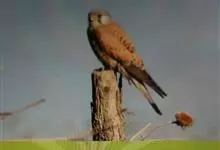 红隼:是隼科、隼属的小型猛禽之一。体重173-335克,体长305-360毫米。翅狭长而尖,尾亦较长,外形和共同爪隼非常相似。雄鸟头蓝灰色,背和翅上覆羽砖红色,具三角形黑斑;腰、尾上覆羽和尾羽蓝灰色,…全部>>