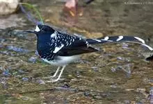 白额燕尾是雀形目鸫科燕尾属鸟类,又叫水鸦雀、白冠燕尾、黑背燕尾。前额至头顶具白斑,头余部、颈、背、喉及胸黑色,腰、腹部及尾下覆羽白色,两翼黑色且具白色翼斑;尾上覆羽黑色并具白色端斑,中央尾羽最短,…全部>>
