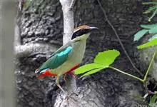 绿胸八色鸫:是雀形目八色鸫科的鸟类,共有12个亚种。体长为16-18厘米,体重65-69克。体型圆胖,尾短,腿长。头黑,上体绿色,两翼深色而具白色斑纹,头顶至后枕深褐,胸及腹部苹果绿,臀亮红。…全部>>