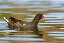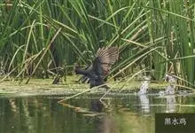 黑水鸡:是鹤形目、秧鸡科的鸟类,共有12个亚种。中型涉禽,体长24-35厘米。嘴长度适中,鼻孔狭长;头具额甲,后缘圆钝;嘴和额甲色彩鲜艳。翅圆形,第2枚初级飞羽最长,或第2枚和第3枚初级飞羽等长,…全部>>