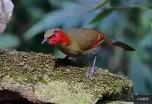 红翅薮鹛是噪眉科、薮鹛属中型鸟类,体长21-24厘米。头顶灰褐色,头侧和颈侧赤红色,上体橄榄褐色,翅上具红色块斑,尾具红色或橙黄色块斑,下体灰色沾褐。虹膜褐色或红色,嘴黑色,脚暗褐色或淡灰褐色。…全部>>
