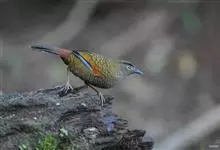 蓝翅噪鹛:噪鹛科、彩翼噪鹛属动物。中型鸟类,体长22-25厘米。上体棕橄榄褐色密被黑色鳞状斑,眼蓝白色,眼上有一长而宽阔的黑色眉纹,从眼先直到颈侧。下体棕褐色被黑色鳞状斑;尾上和尾上覆羽栗色,…全部>>