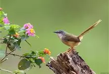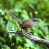 黑喉山鹪莺:体长16厘米,是一种长尾的褐色鹪莺。具明显的白色眉纹及形长的尾。特征为胸具黑色纵纹。上体褐色,两胁黄褐,腹部皮黄;脸颊灰,具明显的白色眉纹及形长的尾。无下髭纹,下体少黑色。虹膜浅褐色,…全部>>