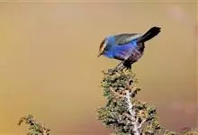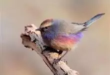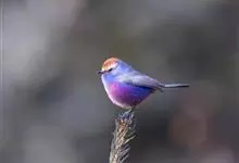 凤头雀莺:小型鸟类。体长9-10厘米,雄鸟呈毛茸茸的紫色和绛紫色,顶冠淡紫灰色,额及凤头白色,尾全蓝。雌鸟喉及上胸白,至臀部渐变成淡紫色,耳羽灰,…全部>>