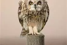 短耳鸮又名小耳木兔、田猫王、夜猫子等,是鸮形目鸱鸮科耳鸮属中小型猛禽动物。成鸟面盘显著,眼周黑色;眼先及内侧眉纹灰白色,面盘余部棕黄色杂以黑色细羽干纹;耳簇羽短小而几乎不外露,…全部>>