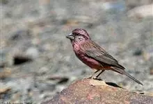 藏朱雀:全长约17-18厘米。雄鸟头部深红色具光辉,喉部暗红色具白色点斑;背部灰白色,各羽具玫瑰红色羽端,形成许多斑纹;腰部淡玫瑰红色;翅暗褐色,沾灰白,羽端沾玫瑰红或灰白色;尾暗棕色,端缘玫瑰红色…全部>>